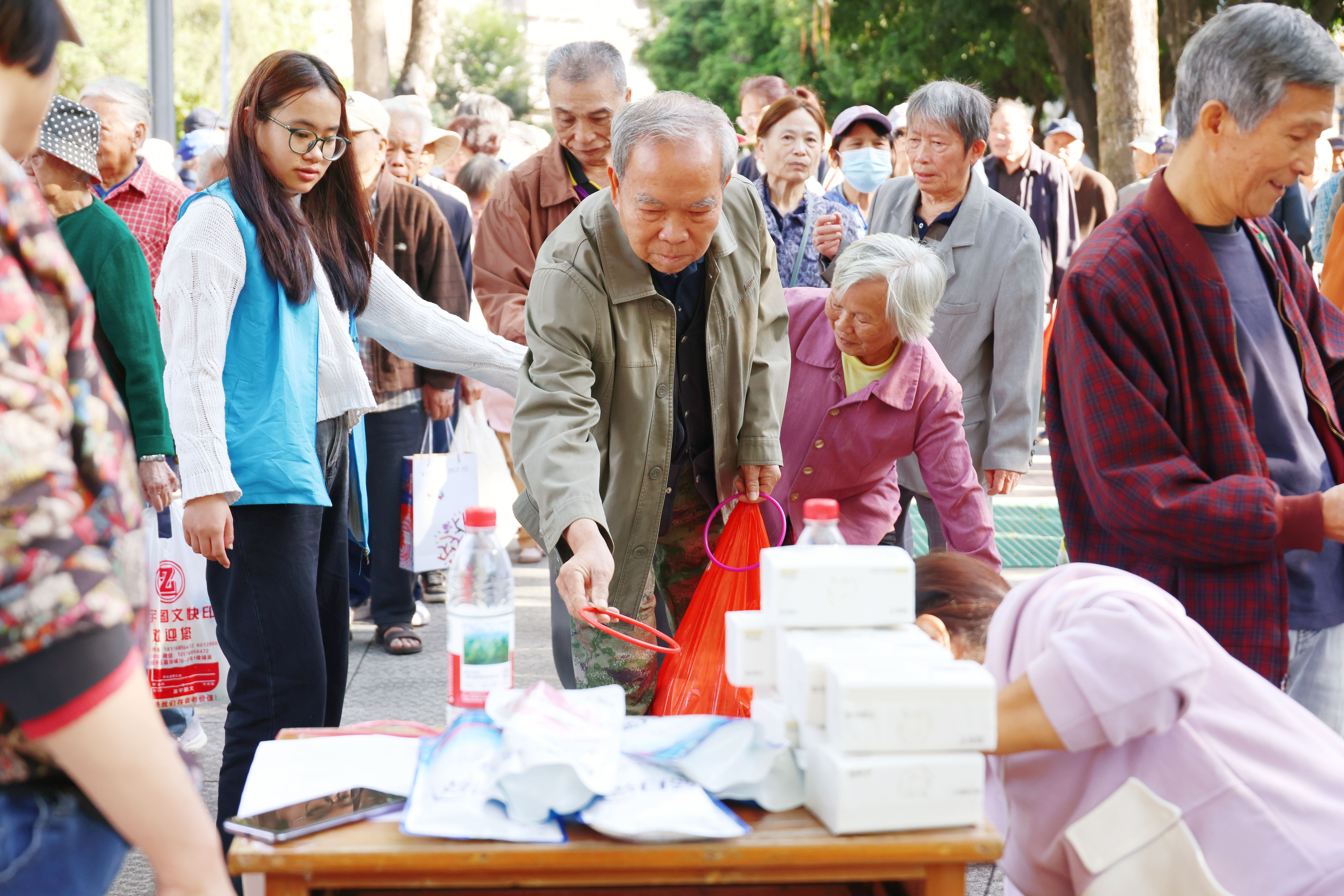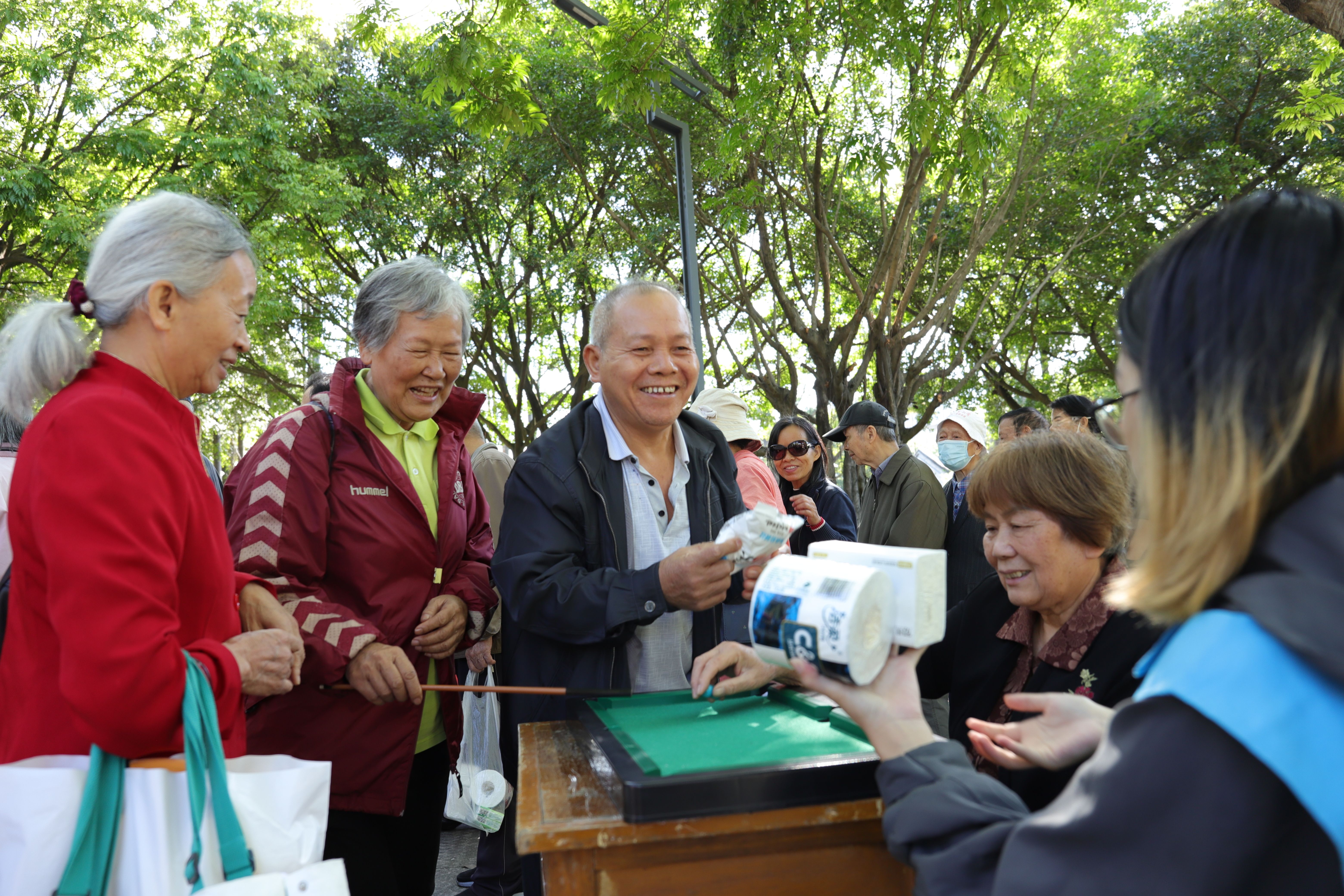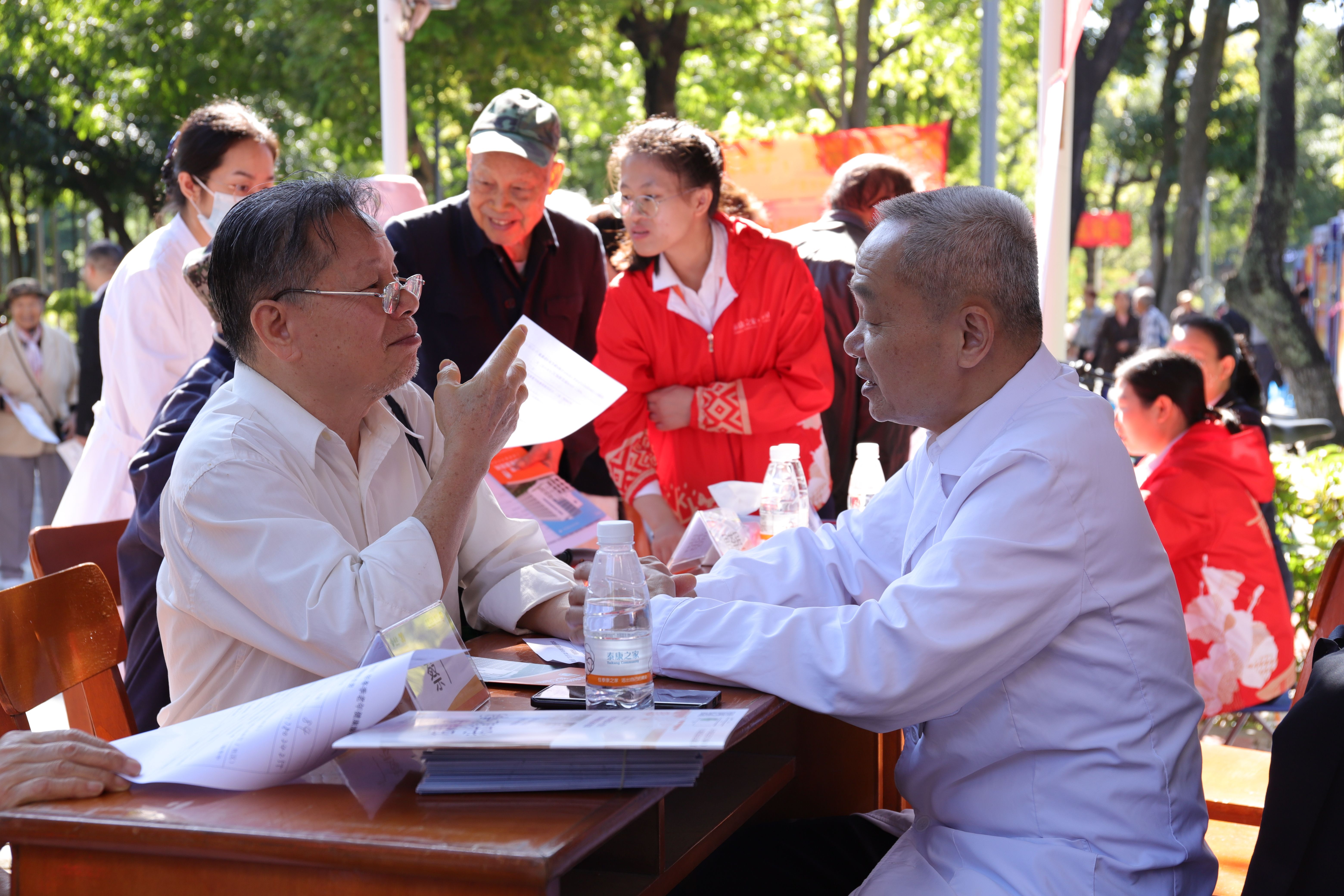 老年趣味运动会期间离退处联合南宁市第八人民医院、泰康之家桂园、中国银行西大分行、西大社区和西大派出所等单位,开展了义诊和以“守住钱袋子 警惕新型诈骗”为主题的防范电信网络诈骗宣传活动。