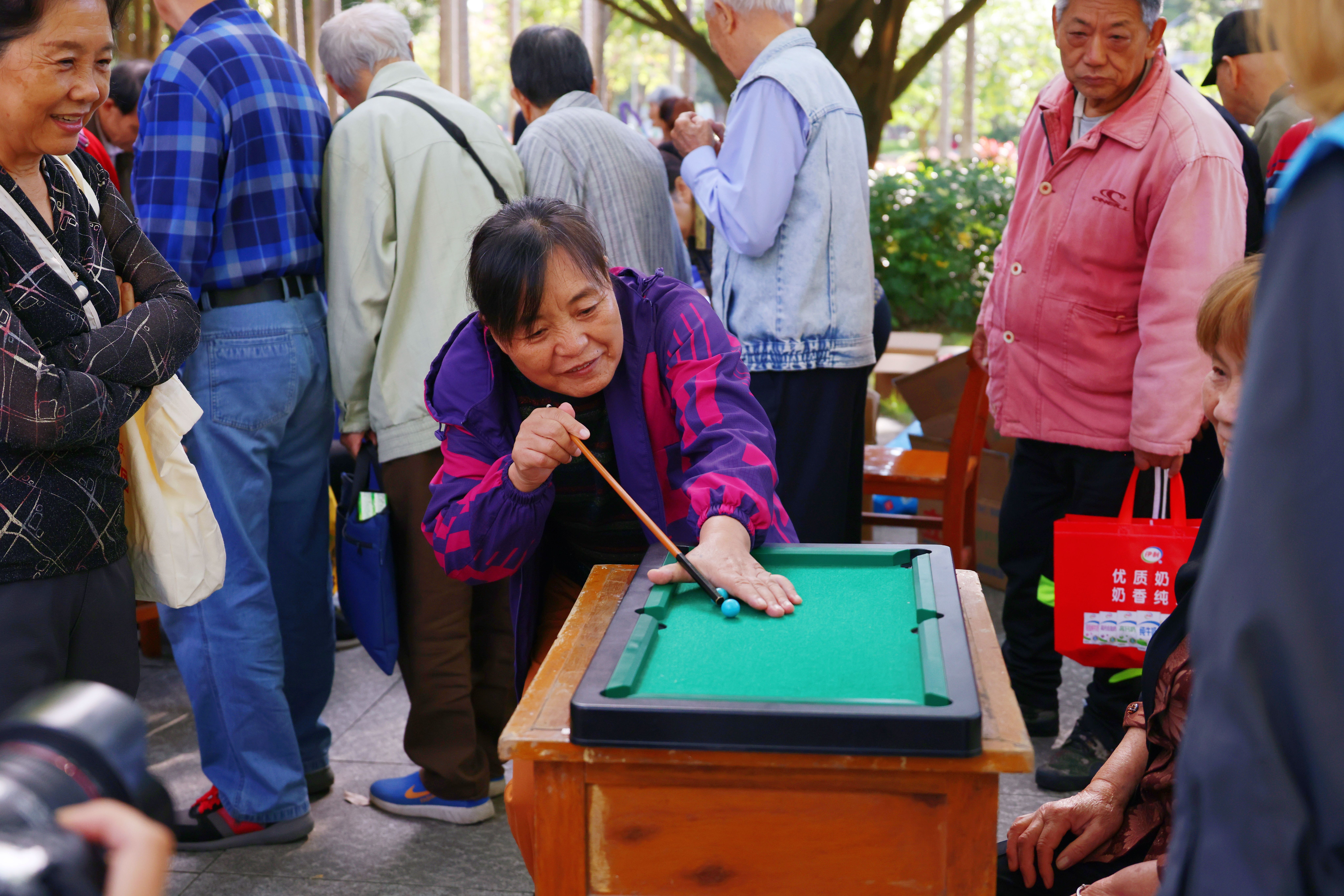 刘副校长宣布运动会开幕的话音落下,活动现场一下子热闹起来,老同志们迅速瞄准自己的“专长项目”,积极投身到快乐桌球、棒夹银珠、数字组合、迷宫寻宝、鳄鱼吞珠、幸运套圈等10个比赛项目中角逐,相互间比风格、赛技艺、叙友谊,享快乐;老同志们热情高涨,在欢乐的氛围中不断挑战自我的同时,也享受着运动带来的乐趣,现场趣味十足,欢笑声语此起彼伏,不绝于耳,热闹非凡,展示了老同志老当益壮、志仍千里的健康向上的精神面貌。