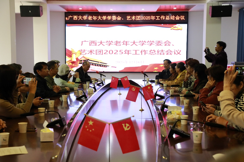 12月6日上午,我校老年大学学委会、艺术团2025年度工作总结会议在南宁市党员教育培训示范基地武鸣纳天召开。校离退处党委书记、处长郑雪明参加了本次会议并做总结讲话。