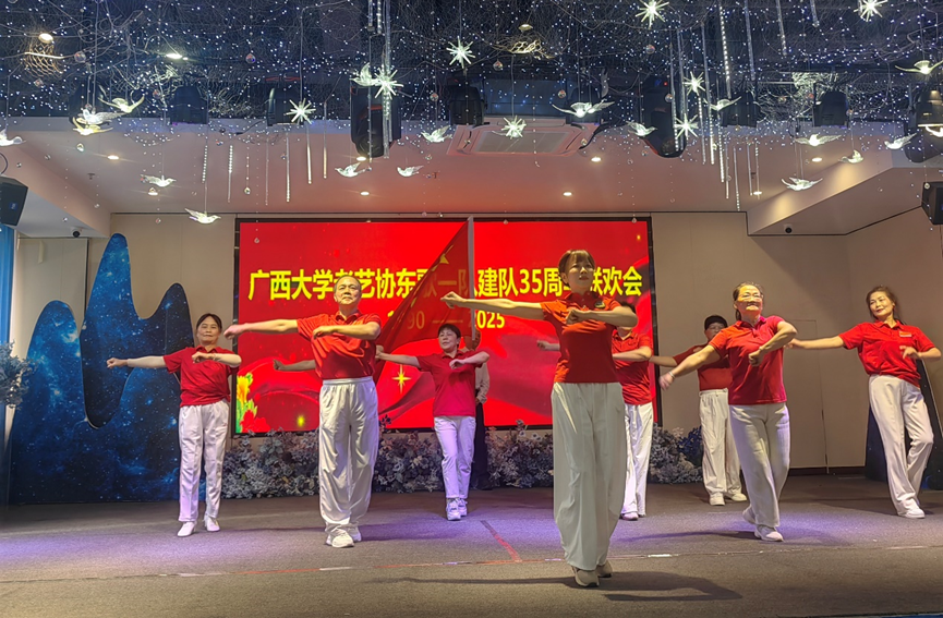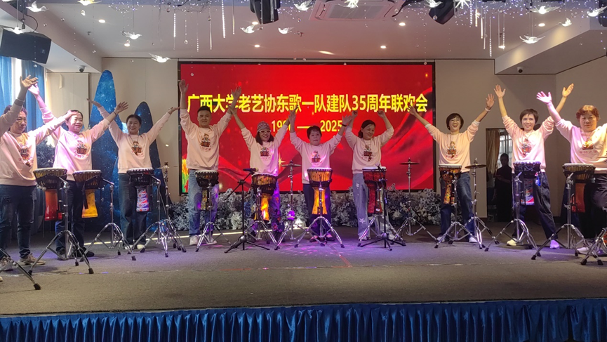12月17日上午,当非洲鼓《美丽中国》点燃全场,我校老年文化体育协会文艺分会东歌咏一队建队35周年庆祝活动正式拉开序幕。队员们以歌舞寄情,20个融合传统与时代气息的节目轮番上演,为建队35周年献上最真挚的祝福,活动以温暖的和声大合唱《山丹丹花开红艳艳》推向高潮。