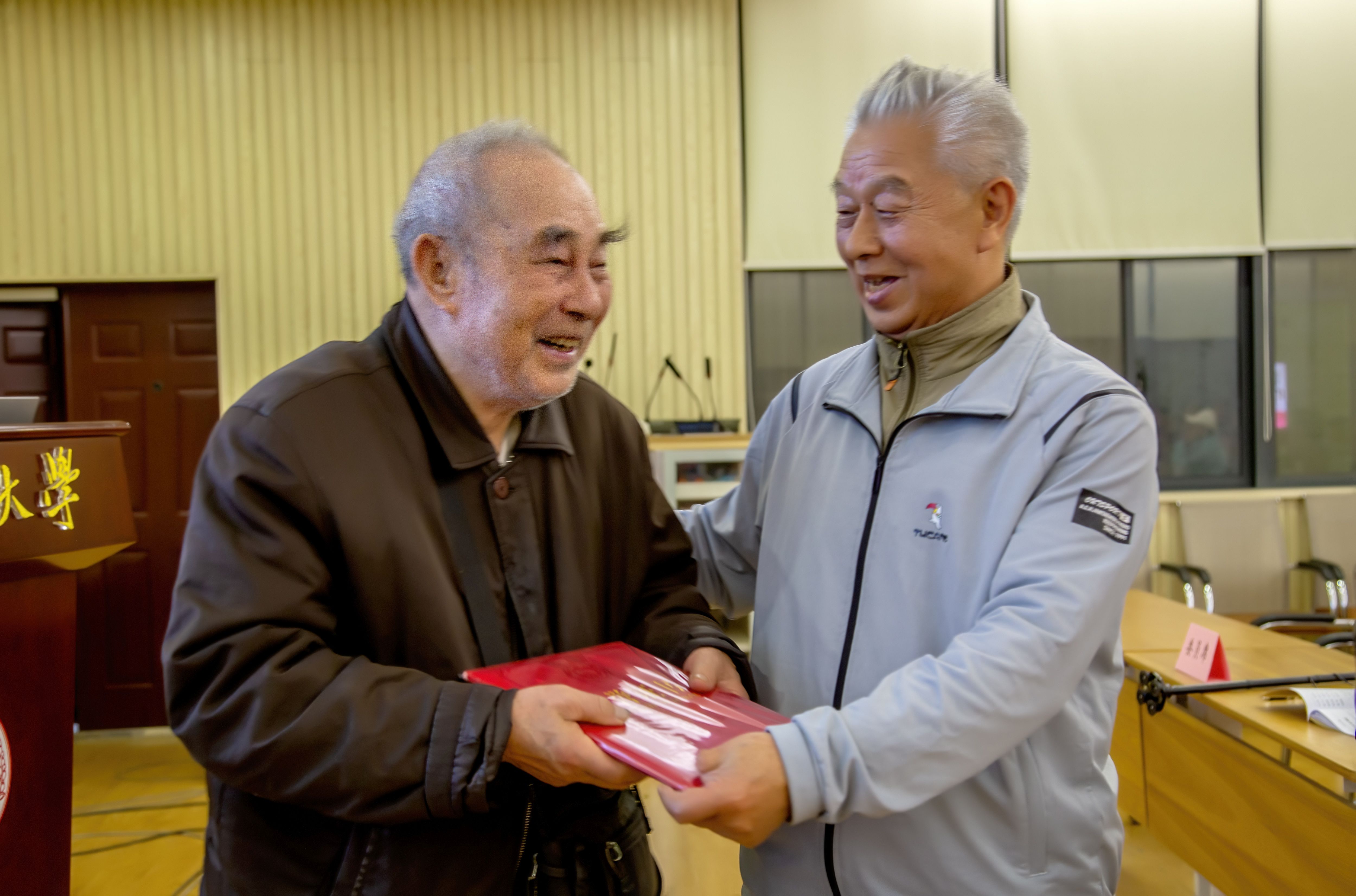 会上文艺分会主席陈熙全、体育分会主席高领、书画分会会长张瑞玲、摄影分会会长王群和合唱团副团长王莲娣分别总结了2025年各分会开展的工作情况,老文体协主席曾伟介绍了2025年老文体协工作主要成绩和亮点,并就2026年工作提出了新的要求。会上还为文艺分会京剧组组长曾纪梅老师颁发了“特殊贡献奖”证书,以表彰九十五岁高龄的他,为校园京剧文化传承与发展所作的突出贡献。